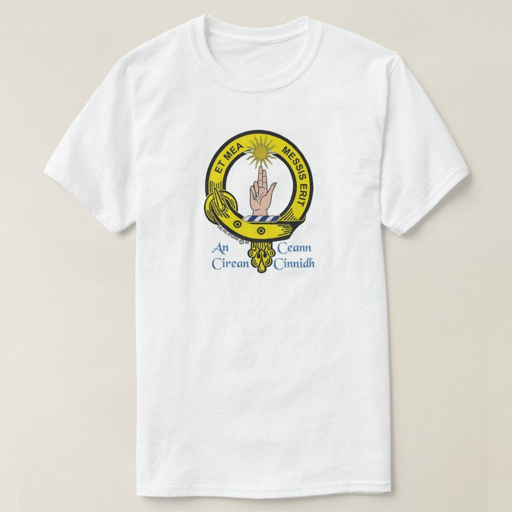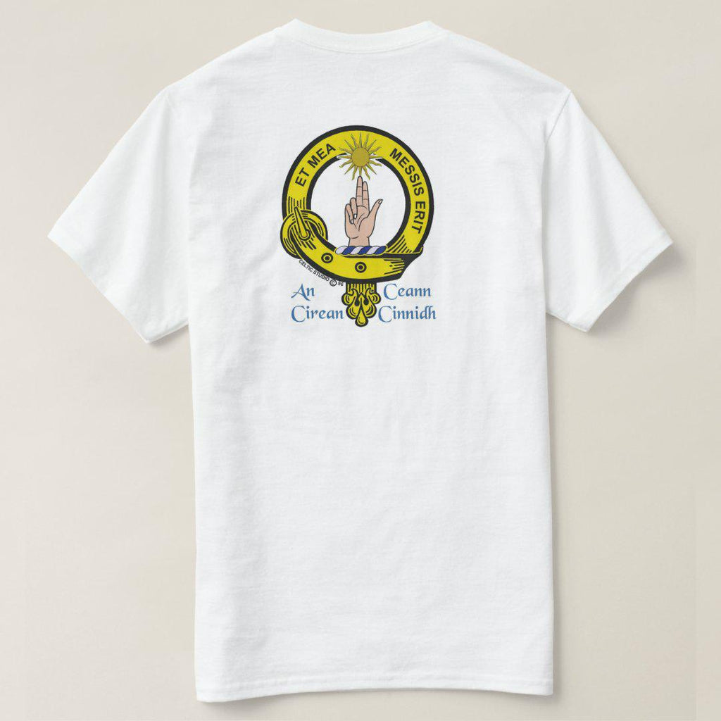 Display your Scottish heritage with pride on one of our white t-shirts featuring your own full colour Clan crest. Made of 100% pre-shrunk heavy weight cotton, these are of superior quality.