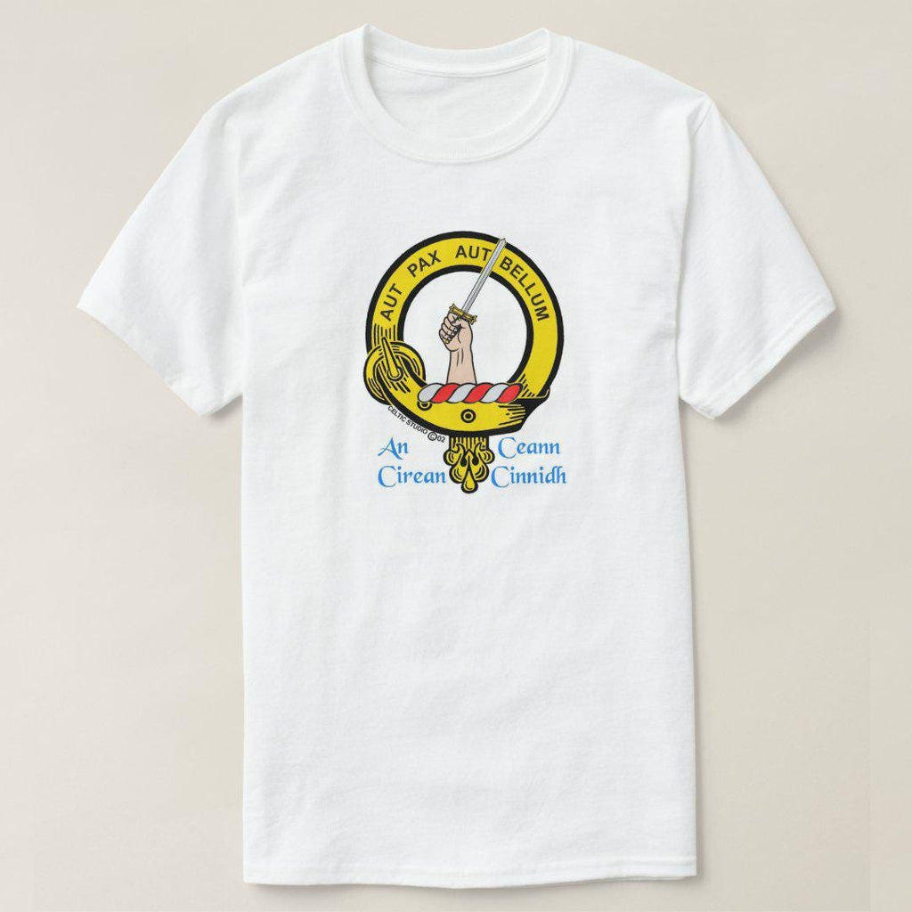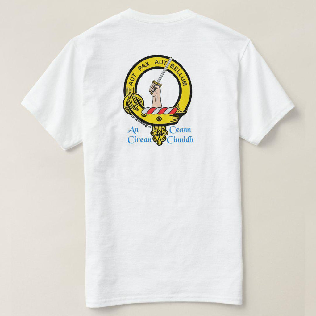 Display your Scottish heritage with pride on one of our white t-shirts featuring your own full colour Clan crest. Made of 100% pre-shrunk heavy weight cotton, these are of superior quality.