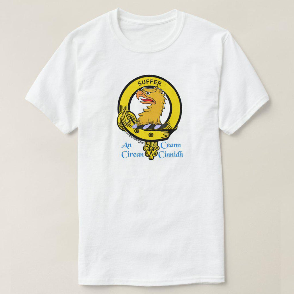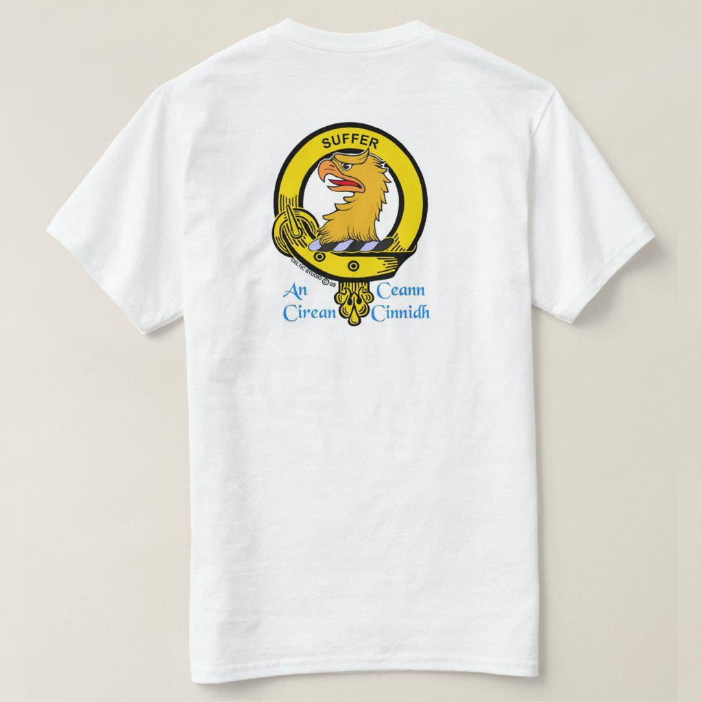 Display your Scottish heritage with pride on one of our white t-shirts featuring your own full colour Clan crest. Made of 100% pre-shrunk heavy weight cotton, these are of superior quality.