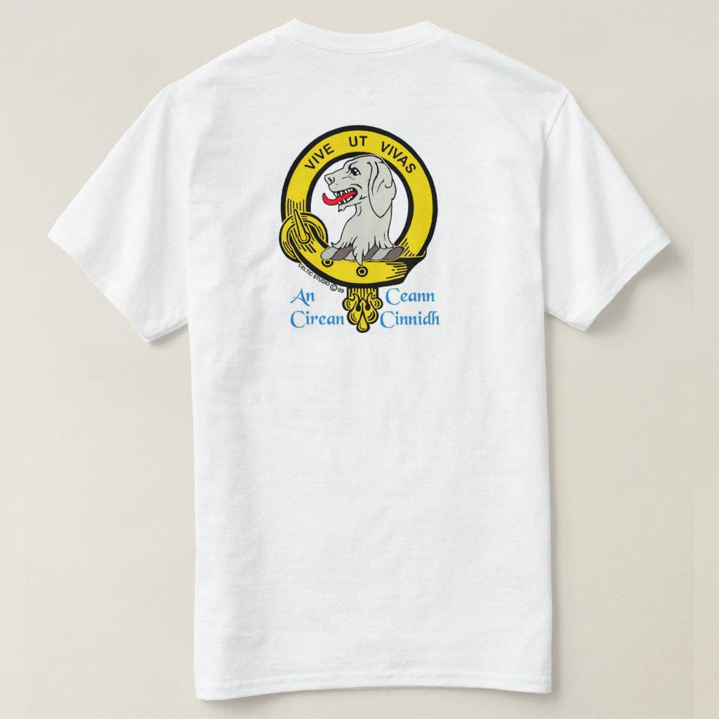 Display your Scottish heritage with pride on one of our white t-shirts featuring your own full colour Clan crest. Made of 100% pre-shrunk heavy weight cotton, these are of superior quality.