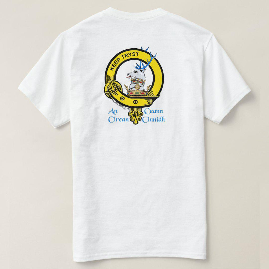 Display your Scottish heritage with pride on one of our white t-shirts featuring your own full colour Clan crest. Made of 100% pre-shrunk heavy weight cotton, these are of superior quality.