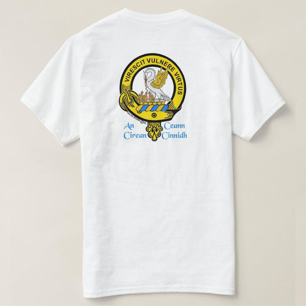 Display your Scottish heritage with pride on one of our white t-shirts featuring your own full colour Clan crest. Made of 100% pre-shrunk heavy weight cotton, these are of superior quality.