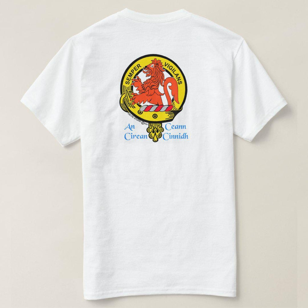 Display your Scottish heritage with pride on one of our white t-shirts featuring your own full colour Clan crest. Made of 100% pre-shrunk heavy weight cotton, these are of superior quality.