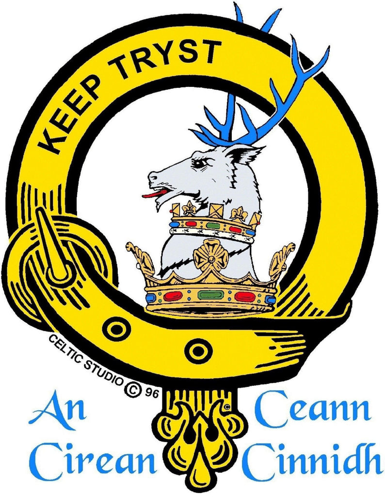 Our stunning Clan crest Iona bar brooch is a combination of old and new. The Iona bar design was first made on the small Holy Isle of Iona off the west coast of Scotland and the Clan crest is designed and made in our small Studio. The Iona bar is decorated with Celtic "bosses" on each end and is connected by a Celtic interlace design, the symbol of everlasting life. The Clan crest is suspended from the center of this antique design.