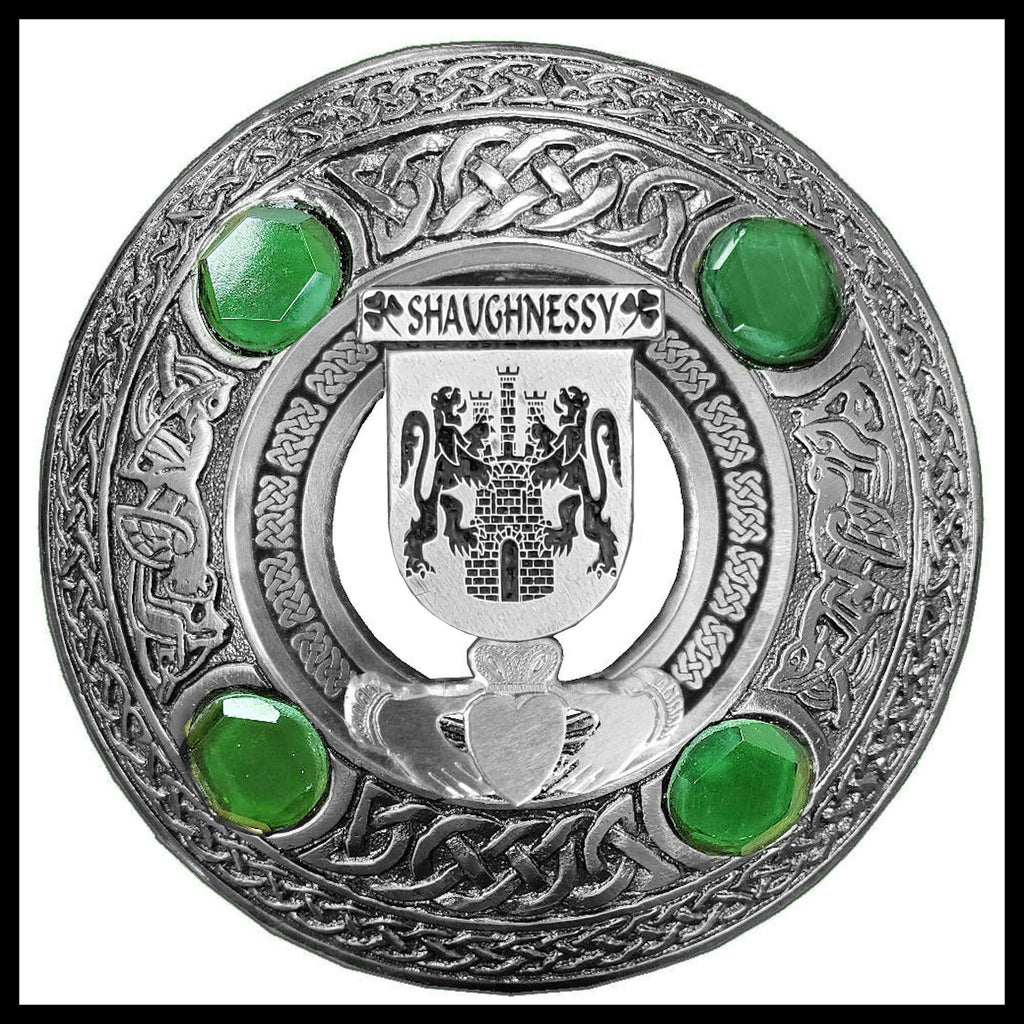 Shaughnessy Irish Claddagh Coat of Arms Plaid brooch ~ Emerald stones