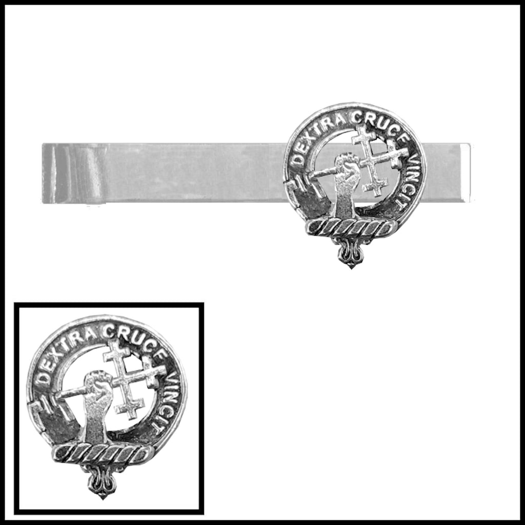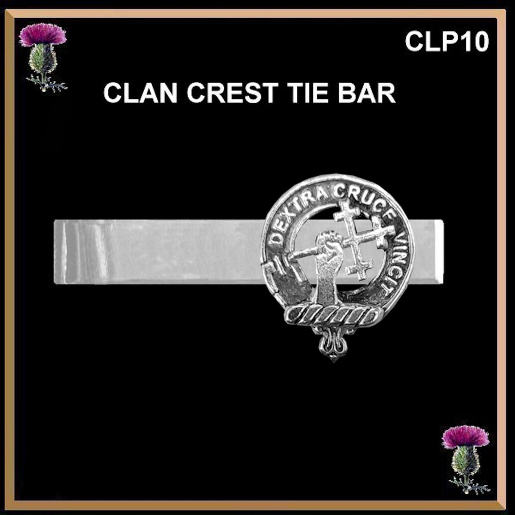 Your proud Scottish Clan heritage can be displayed by wearing your beautiful Scottish Clan clip tie bar. Each Clan tie bar is exquisitely handcrafted in high detail in lead free pewter or sterling silver and is mounted on a base metal tie bar. The Clan clip tie bar crest is 19.5 mm.