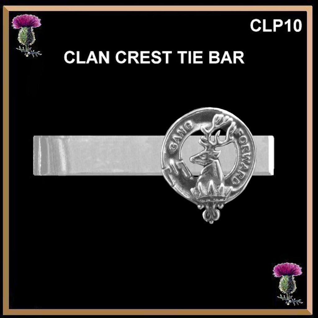 Your proud Scottish Clan heritage can be displayed by wearing your beautiful Scottish Clan clip tie bar. Each Clan tie bar is exquisitely handcrafted in high detail in lead free pewter or sterling silver and is mounted on a base metal tie bar. The Clan clip tie bar crest is 19.5 mm.