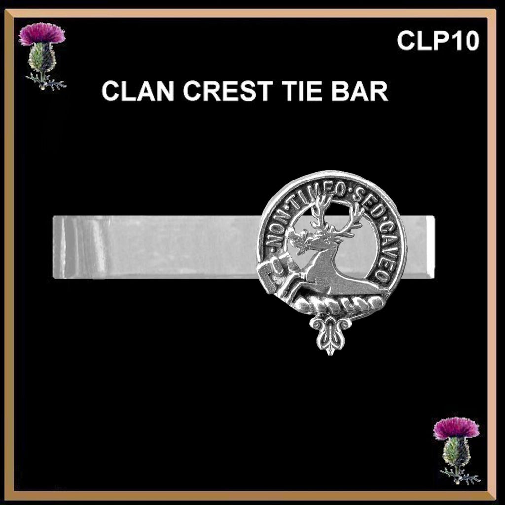 Your proud Scottish Clan heritage can be displayed by wearing your beautiful Scottish Clan clip tie bar. Each Clan tie bar is exquisitely handcrafted in high detail in lead free pewter or sterling silver and is mounted on a base metal tie bar. The Clan clip tie bar crest is 19.5 mm.
