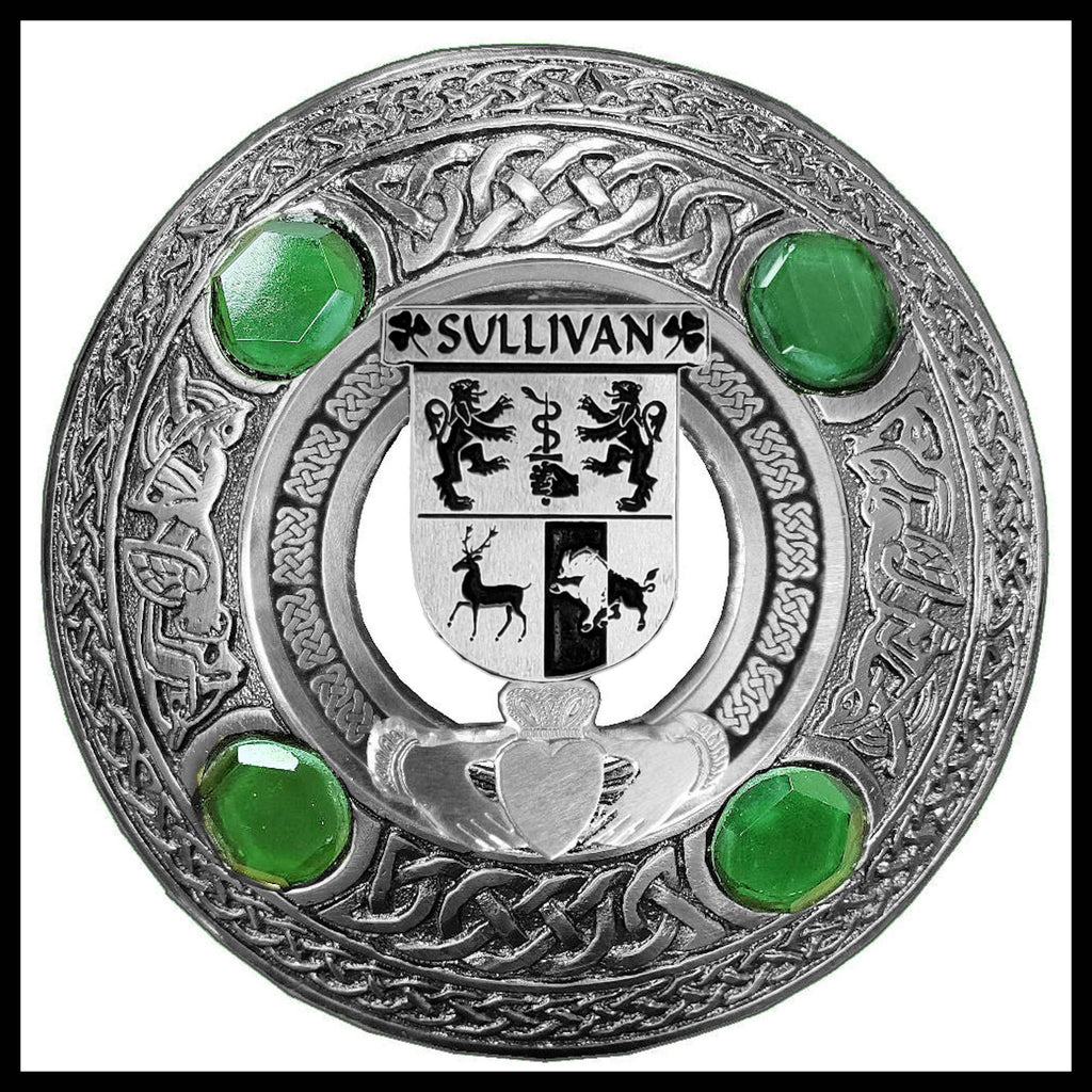 Sullivan Irish Claddagh Coat of Arms Plaid brooch ~ Emerald stones