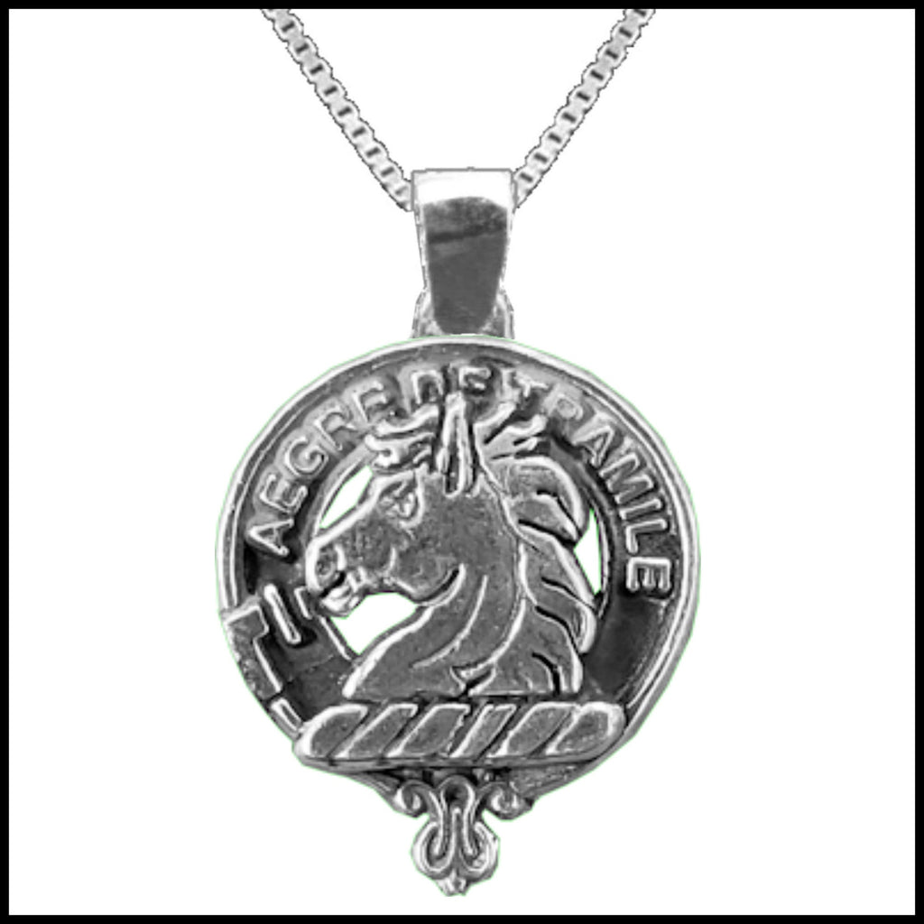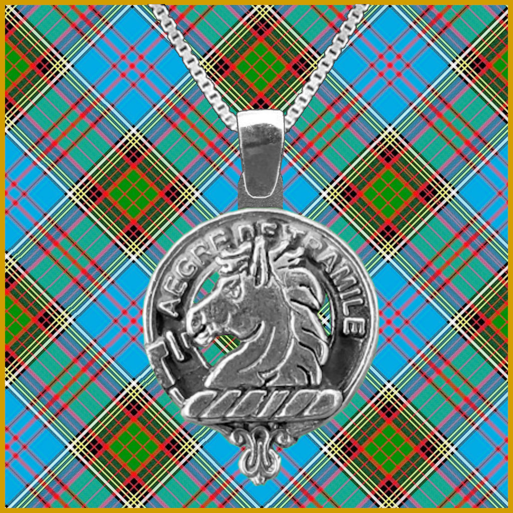 Your proud Scottish heritage can be displayed by wearing this beautiful sterling silver or gold Clan crest pendant. Each Clan design is exquisitely handcrafted in high detail in sterling silver or gold. For both the sterling silver and gold pendant there is an optional Italian made sterling silver medium weight box link chain available in a few lenght options: 45.72 cm (18"), 50.8 cm (20"), 55.8 cm (22"), or 61 cm (24"). If you are interested in a gold chain please send us a message.