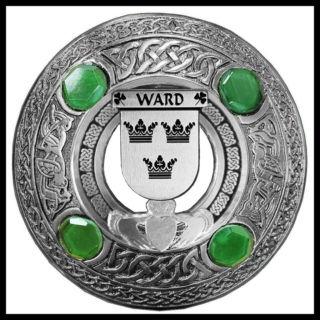 Ward Irish Claddagh Coat of Arms Plaid brooch ~ Emerald stones