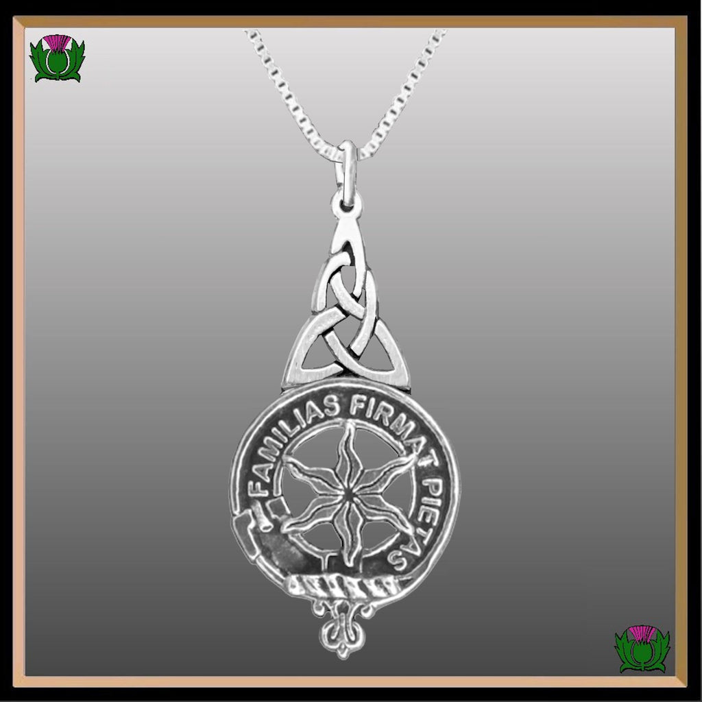Your proud Scottish Clan heritage can be displayed through this beautiful Clan pendant. This exquisite Celtic interlace pendant is a beautifully elegant way to show your Clan crest.