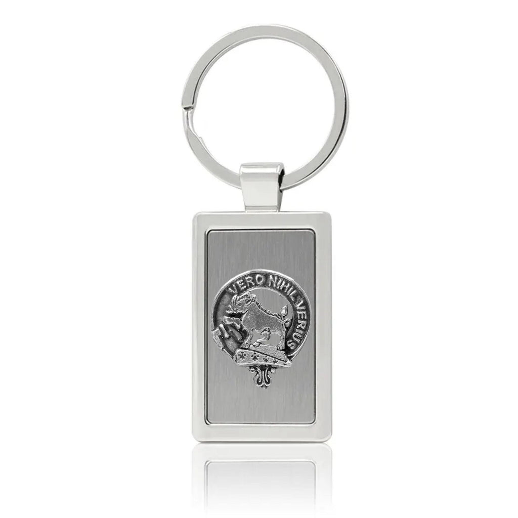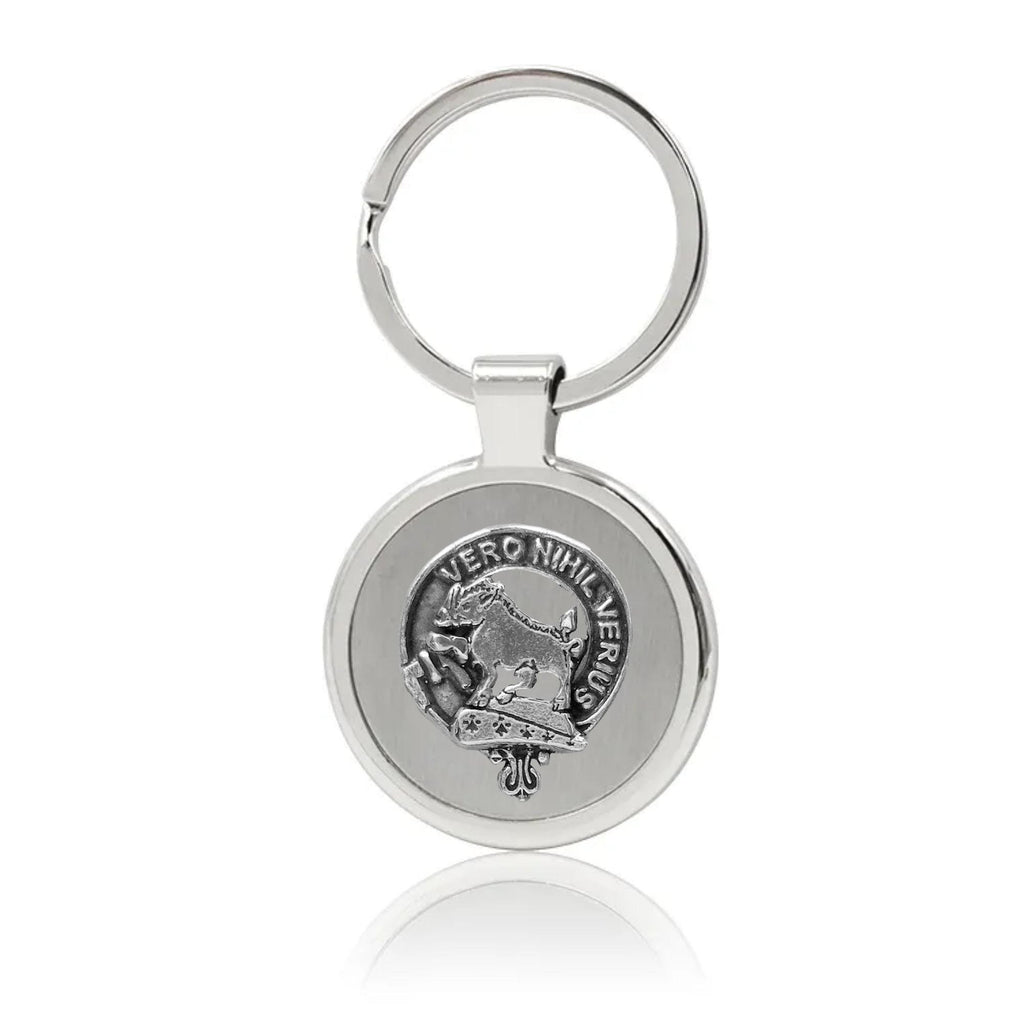 Your proud Scottish heritage can be displayed with this beautiful Clan crest stainless steel key ring. This Clan key ring is available with either a pewter or sterling silver Clan crest. The clan crest has been designed and manufactured entirely by Celtic Studio in Canada for generations.