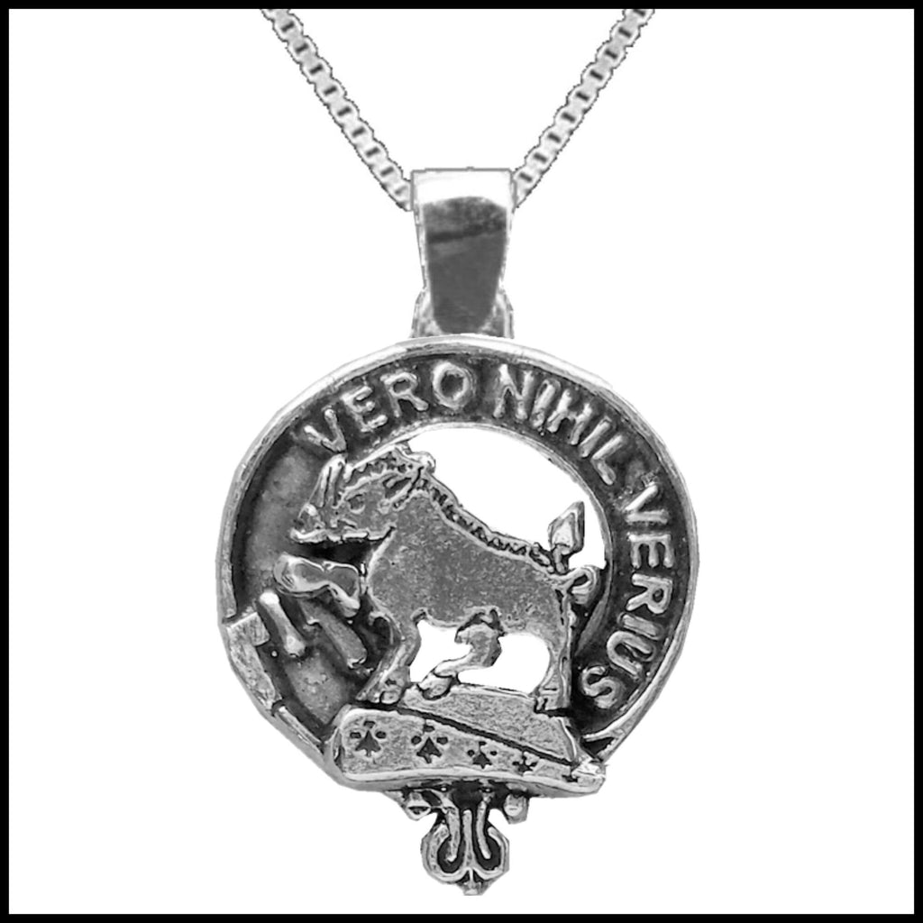 Your proud Scottish heritage can be displayed by wearing this beautiful sterling silver or gold Clan crest pendant. Each Clan design is exquisitely handcrafted in high detail in sterling silver or gold. For both the sterling silver and gold pendant there is an optional Italian made sterling silver medium weight box link chain available in a few lenght options: 45.72 cm (18"), 50.8 cm (20"), 55.8 cm (22"), or 61 cm (24"). If you are interested in a gold chain please send us a message.