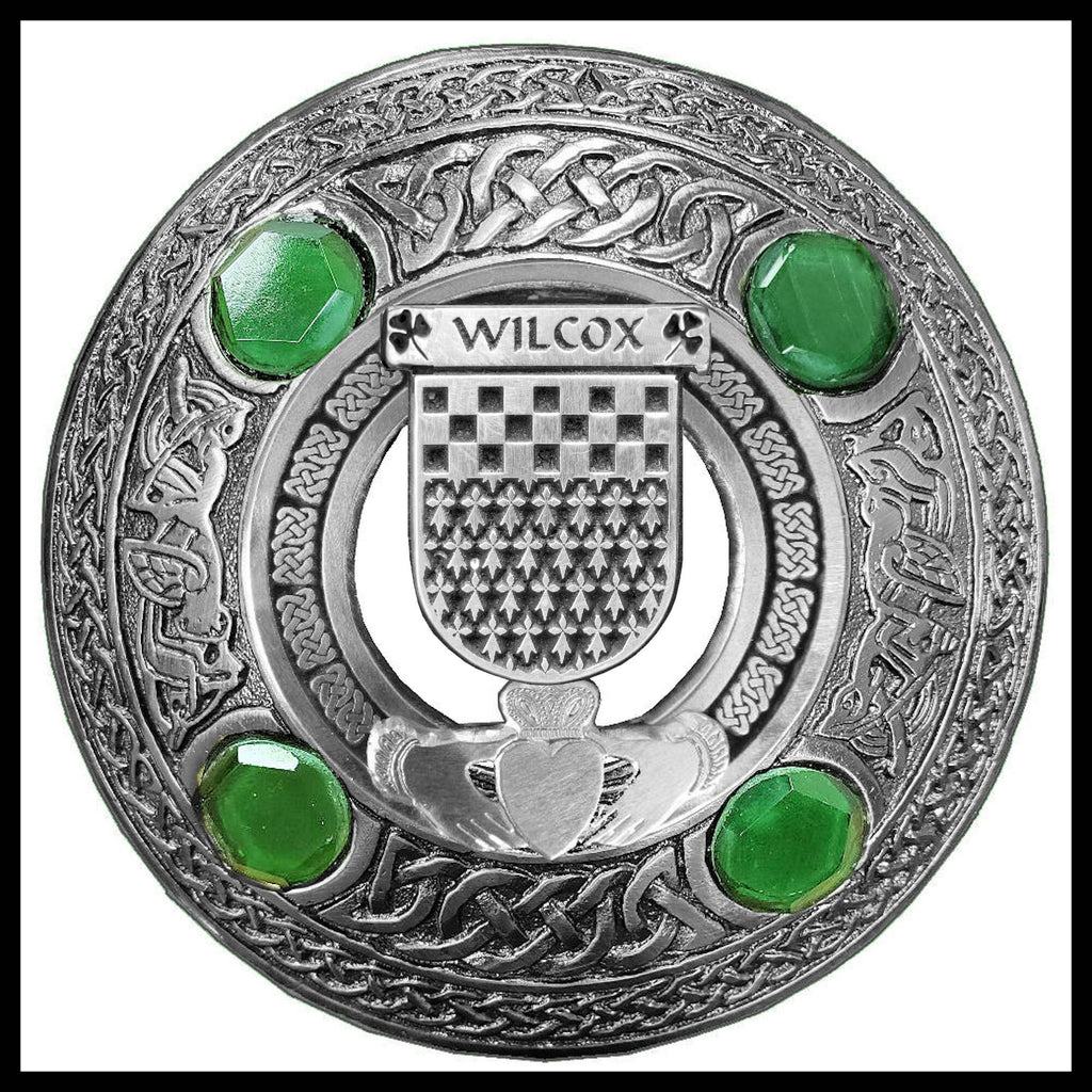 Wilcox Irish Claddagh Coat of Arms Plaid brooch ~ Emerald stones