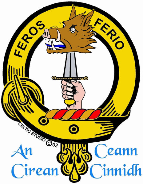 The Scottish Clan crest is surrounded by a detailed belt and buckle design upon which is inscribed your Clan motto in raised relief lettering. In ancient times, the chief of the Clan presented his Clansmen with his crest for them to wear as a symbol of their loyalty and Clan affiliation.