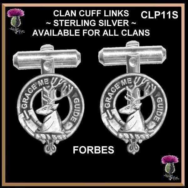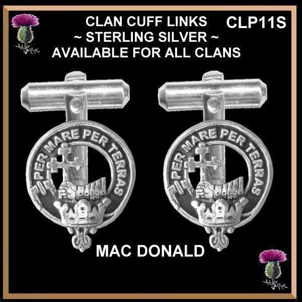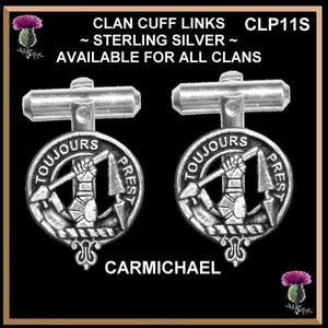 Your proud Scottish Clan heritage can be displayed through these beautiful Clan crest cufflinks. Each pair of cufflinks are exquisitely handcrafted in high detail in sterling silver with sterling silver backs. The Clan Crest is 11/16" (18mm) in diameter.