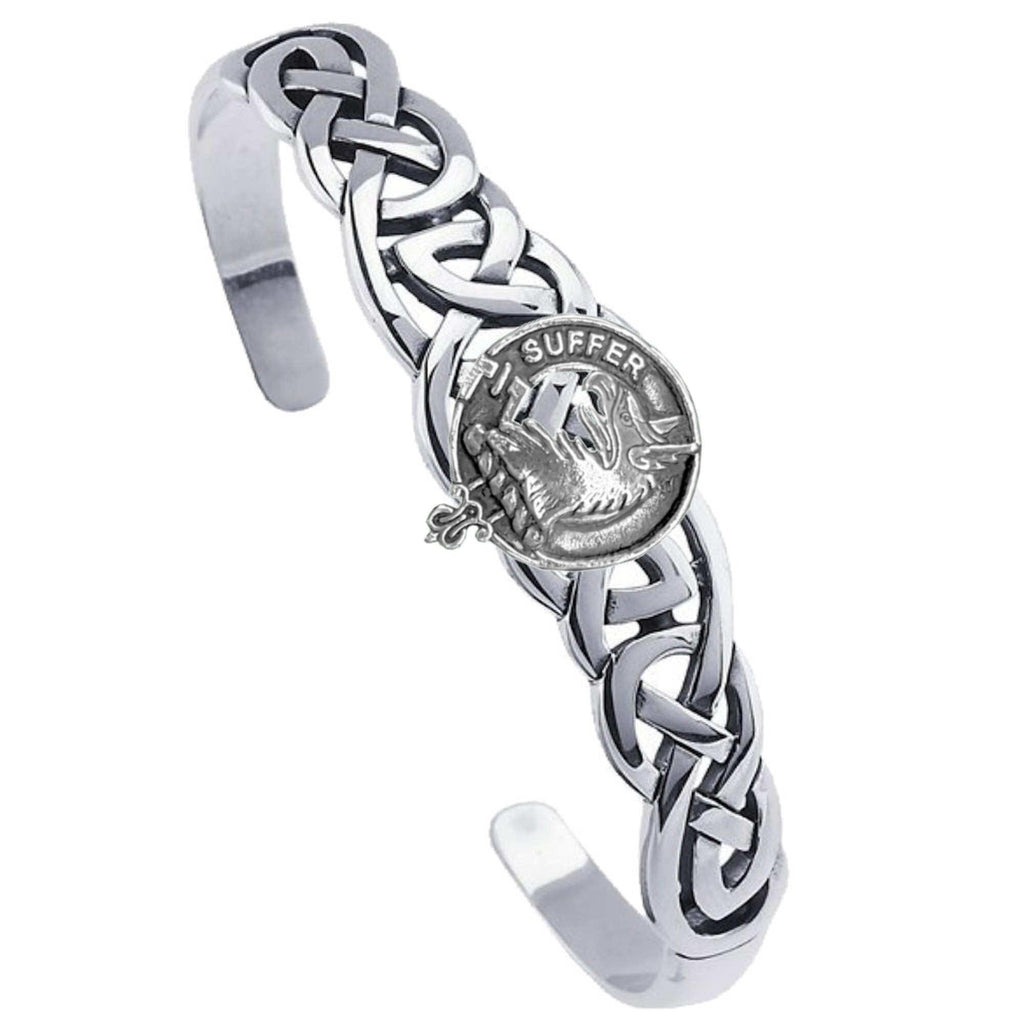 A superb high quality Celtic Interlace cuff bracelet with your Clan Crest solidly made in solid sterling silver. The bracelet is created with an intricate Celtic weave pattern. This attractive bracelet fits any wrist size. A great way to display your unique Clan affiliation or just because you love everything Celtic! All Clans are available. The Celtic Interlace design is the symbol of eternal life or all things that last forever! Like love for that special person in your life.
