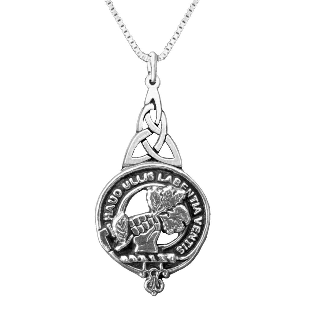 Your proud Scottish Clan heritage can be displayed through this beautiful Clan pendant. This exquisite Celtic interlace pendant is a beautifully elegant way to show your Clan crest.