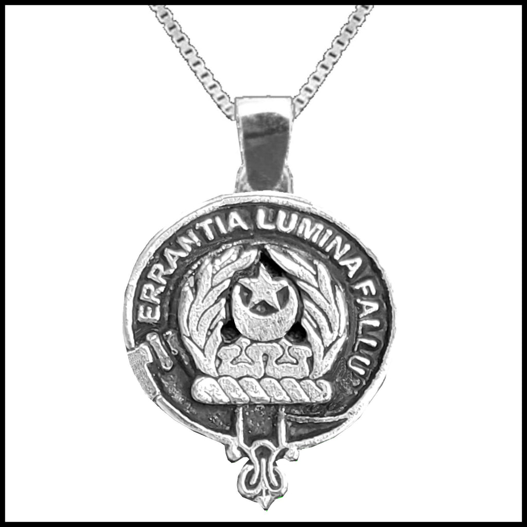 Your proud Scottish heritage can be displayed by wearing this beautiful sterling silver or gold Clan crest pendant. Each Clan design is exquisitely handcrafted in high detail in sterling silver or gold. For both the sterling silver and gold pendant there is an optional Italian made sterling silver medium weight box link chain available in a few lenght options: 45.72 cm (18"), 50.8 cm (20"), 55.8 cm (22"), or 61 cm (24"). If you are interested in a gold chain please send us a message.