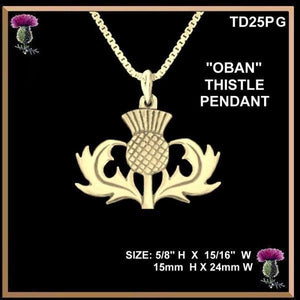 Oban Thistle Pendant, Scottish Emblem, Flower of Scotland - Gold