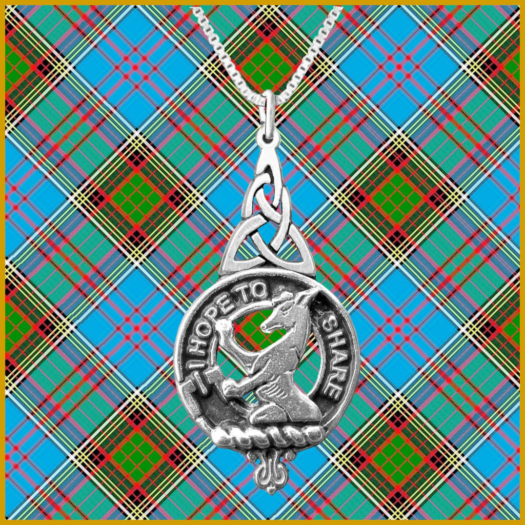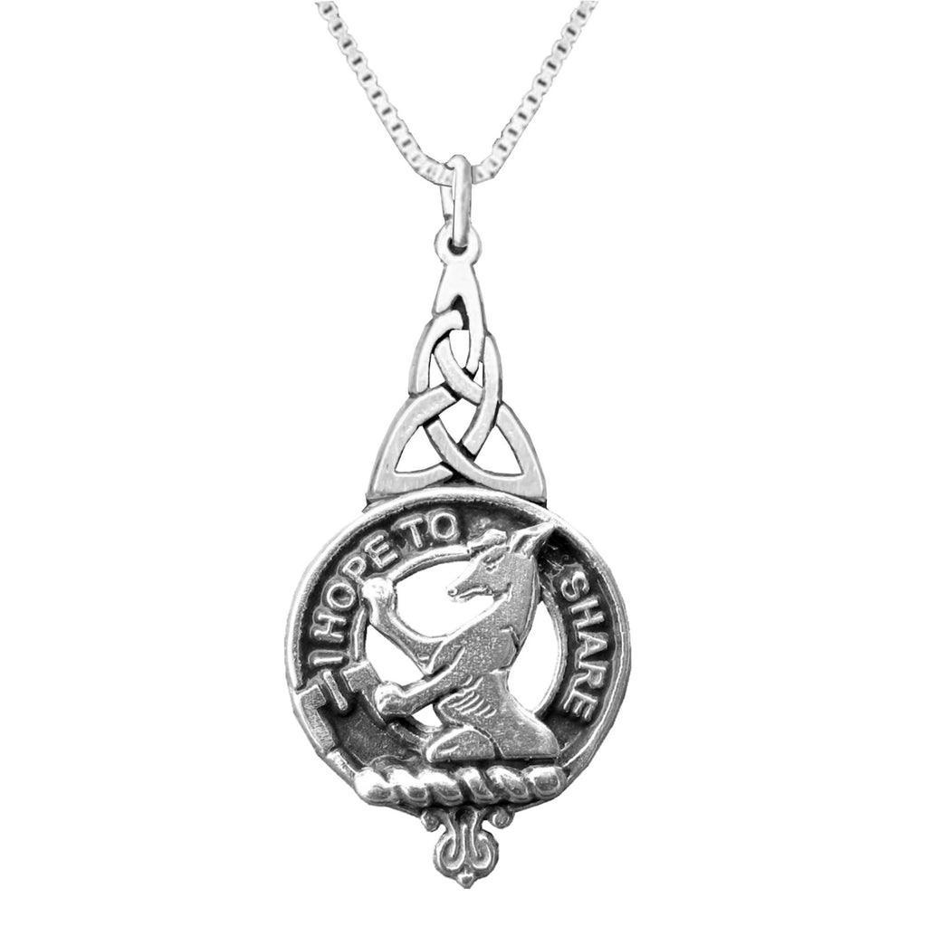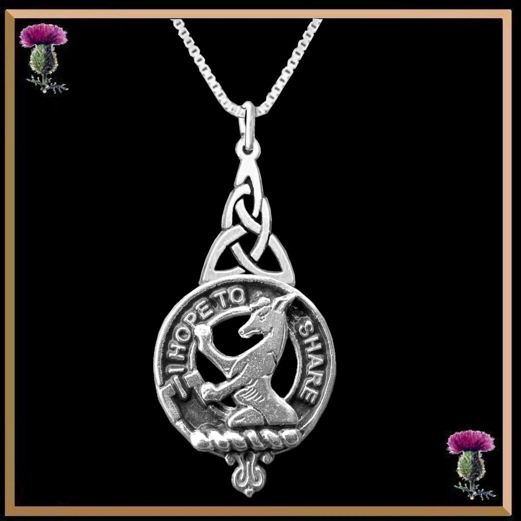 Your proud Scottish Clan heritage can be displayed through this beautiful Clan pendant. This exquisite Celtic interlace pendant is a beautifully elegant way to show your Clan crest.