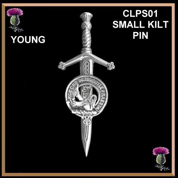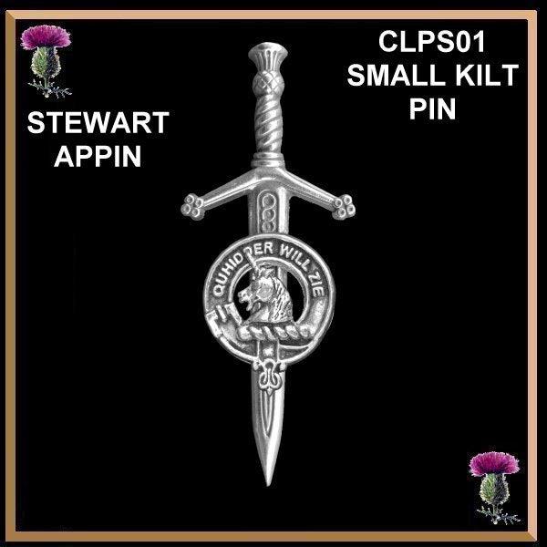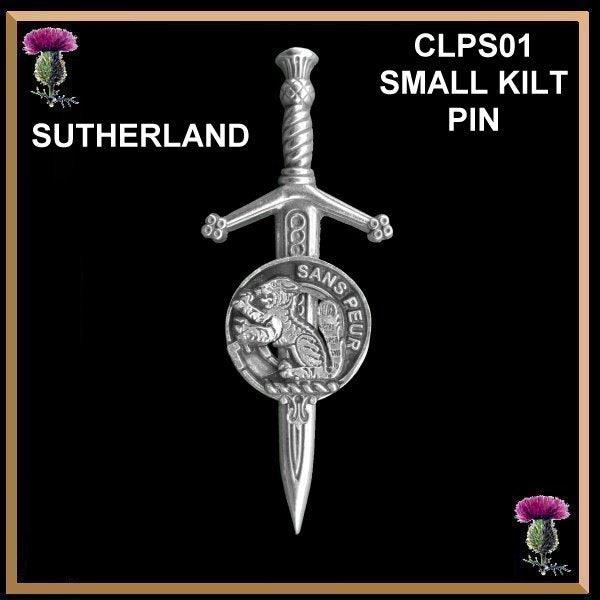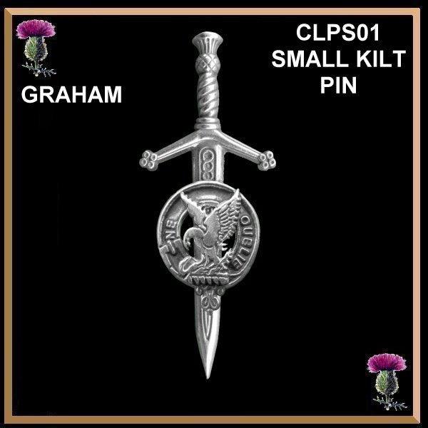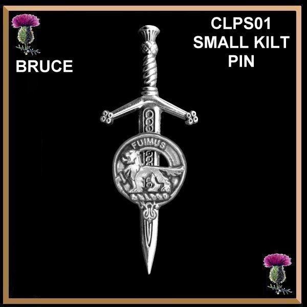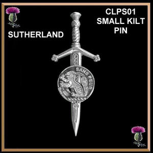 Your proud Scottish Clan heritage can be displayed through this beautiful small Clan crest kilt pins. This is a smaller version of our popular large kilt pin and is the perfect size to be worn as either a more petite kilt pin or as a brooch or a lapel pin. Each small kilt pin is individually cast with a sturdy sword handle and the hilt topped with a decorative thistle design. These small Clan kilt pins are made to last!