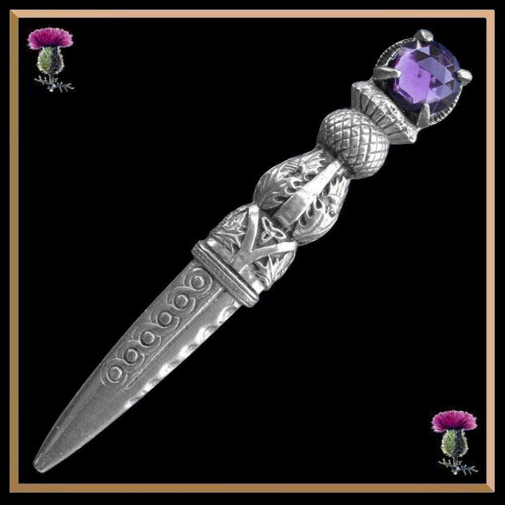 Sgian Dubh Thistle Pewter Kilt Pin; Amethyst