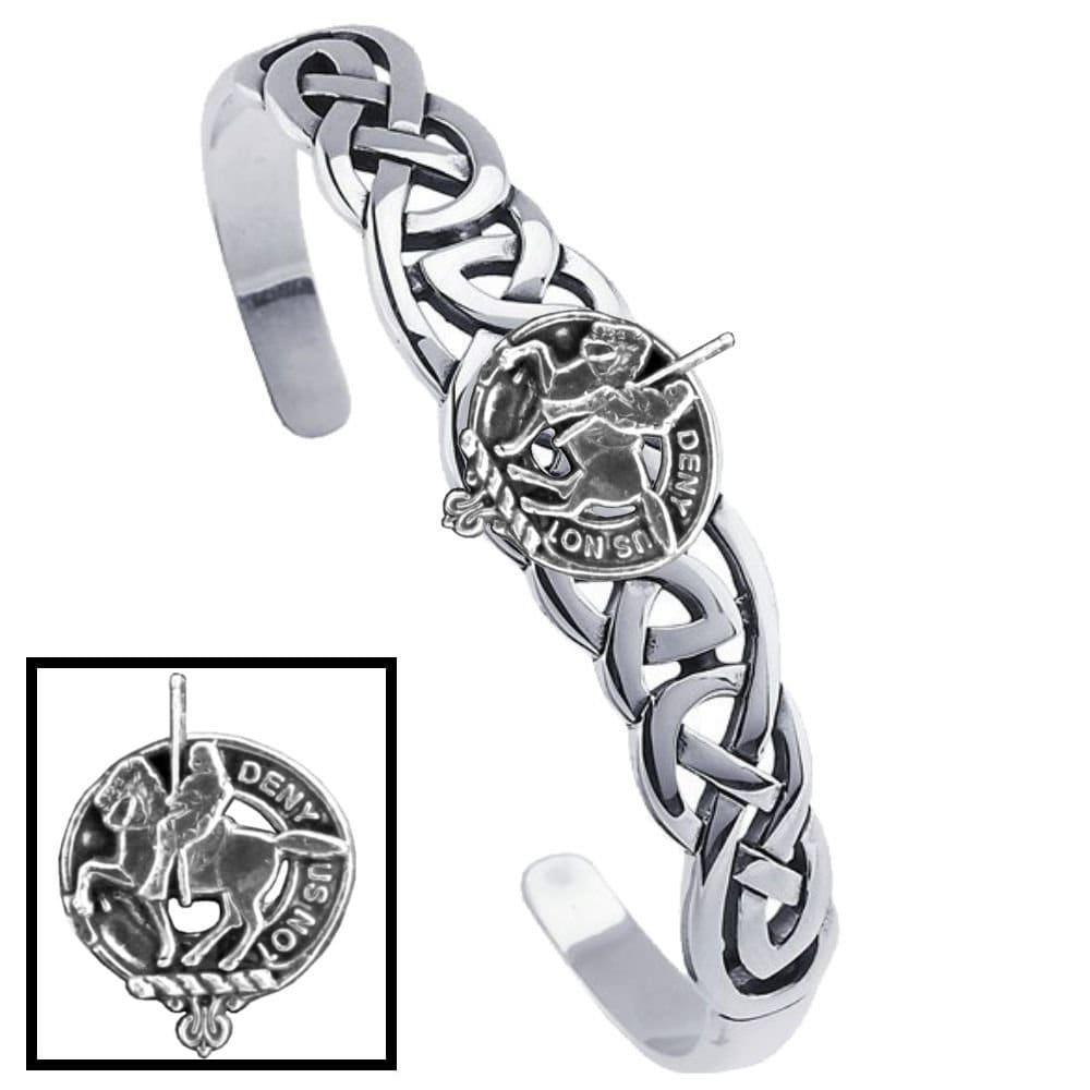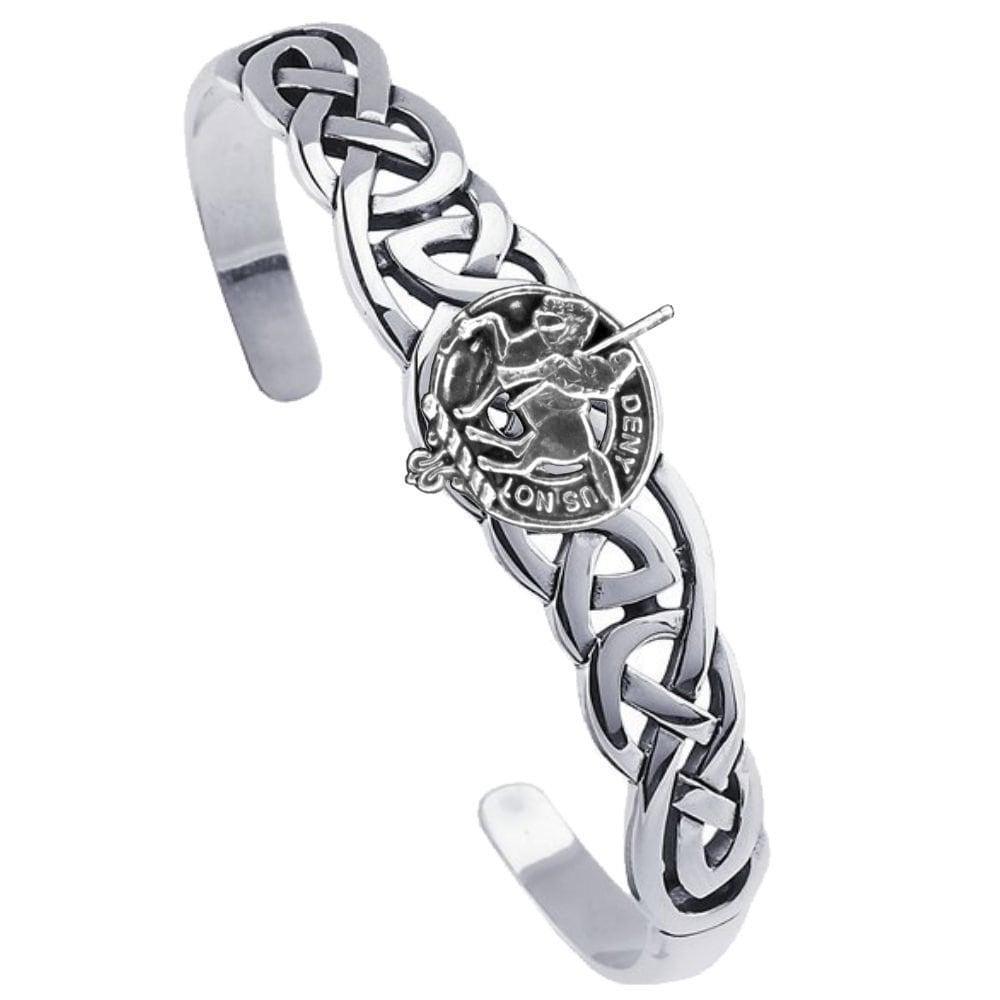 A superb high quality Celtic Interlace cuff bracelet with your Clan Crest solidly made in solid sterling silver. The bracelet is created with an intricate Celtic weave pattern. This attractive bracelet fits any wrist size. A great way to display your unique Clan affiliation or just because you love everything Celtic! All Clans are available. The Celtic Interlace design is the symbol of eternal life or all things that last forever! Like love for that special person in your life.
